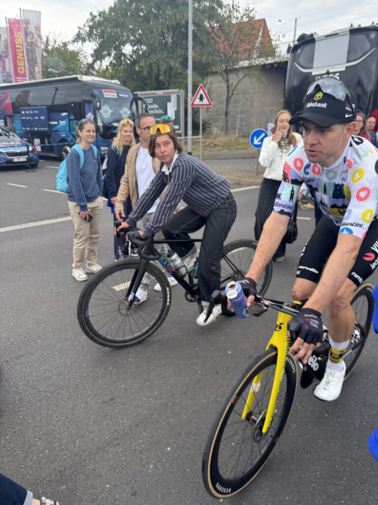 Am Samstagmorgen ist die Stimmung in Arnsberg noch einmal ganz anders. Die Zielstadt vom Vortag verwandelt sich in einen Startort. In der Stadt stehen die Team-Busse, Fans drängen sich davor, um einen Blick auf ihre Helden zu erhaschen. Und wieder: Florian Lipowitz ist einer der meistumringten Fahrer, fast schon Popstar-mäßig. Daneben Superstars wie Wout van Aert – plötzlich in Reichweite, während er sich aufs Rad schwingt.